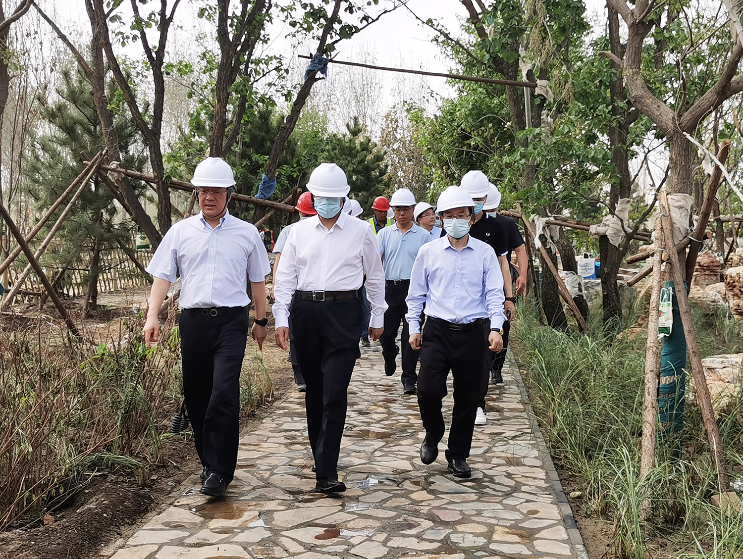 張建軍董事長(zhǎng)向吳清海書記匯報(bào)了雄安郊野公園承德園的規(guī)劃設(shè)計(jì)、功能布局、工程建設(shè)等有關(guān)情況后,吳清海書記一行實(shí)地踏查了承德展園施工現(xiàn)場(chǎng)。