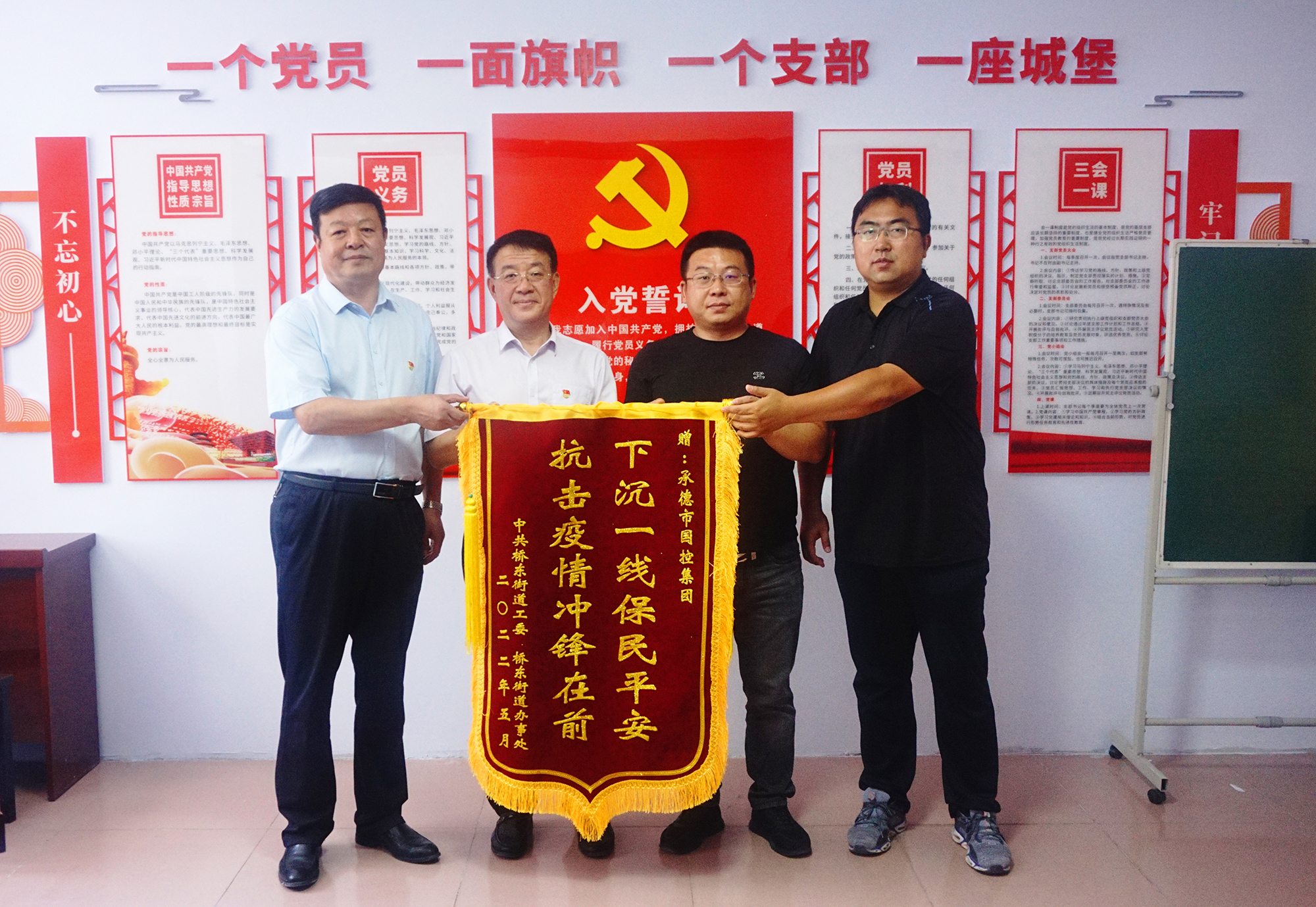 捐贈(zèng)儀式后,國(guó)控集團(tuán)領(lǐng)導(dǎo)班子與橋東街道、會(huì)龍山社區(qū)主要負(fù)責(zé)人,就結(jié)對(duì)幫建工作進(jìn)行座談,詳細(xì)了解了創(chuàng)城工作開(kāi)展情況、存在問(wèn)題及下一步打算,針對(duì)社區(qū)基礎(chǔ)設(shè)施不完善、公共停車(chē)泊位施劃不合理、樓道雜亂和小廣告亂貼等問(wèn)題,研究制定了具體舉措。會(huì)上,為感謝國(guó)控集團(tuán)在抗擊疫情和結(jié)對(duì)幫建工作中的大力支持,橋東街道、會(huì)龍山社區(qū)向集團(tuán)公司贈(zèng)送了“下沉一線保民平安、抗擊疫情沖鋒在前”錦旗。