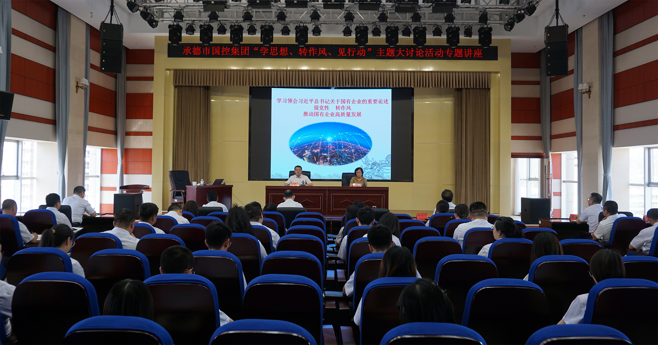 2023年7月6日,為深入學習貫徹習近平總書記關于堅持不懈抓好作風建設的重要論述,落實市委市政府關于在全市開展“學思想、轉作風、見行動”主題大討論活動精神,市國控集團邀請承德市委黨校黨史黨建教研室主任王仲娟教授,開展了“學思想、轉作風、見行動”主題大討論活動專題講座,市國控集團領導班子、集團本部全體員工、實際控制子公司中層以上負責同志及黨員員工參加講座。